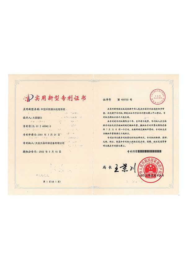 一體式中空纖維膜實用技術(shù)證書