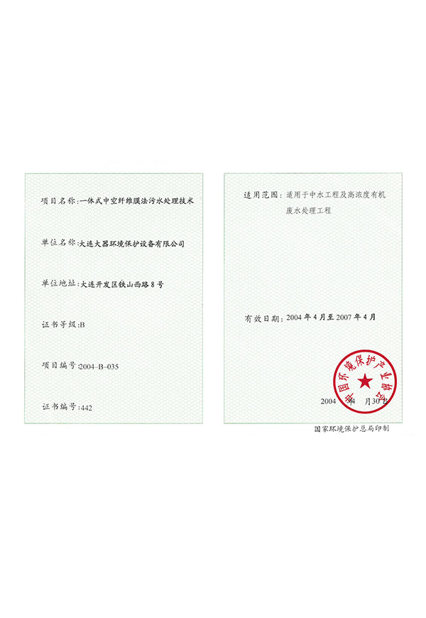 企業(yè)轉(zhuǎn)型,“大連大器環(huán)保設(shè)備有限公司”更名為“大器環(huán)保工程(大連)有限公司”。FRP凈化槽及相關(guān)零部件生產(chǎn)停止,開始生產(chǎn)銷售環(huán)保裝置及環(huán)保工程的設(shè)計施工與日常維護管理。掀起了中國的污水處理工程新開端。