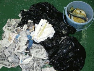 與能吸收水分的紙、木屑等一起處理的話,可轉(zhuǎn)化為粉末狀物質(zhì)